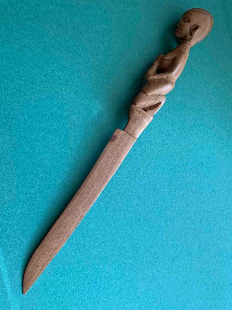 В XIX веке и ранее, страницы в книгах, газетах и журналах не всегда были уже разрезаны. И были популярны большие такие инструменты для ровного разрезания страниц по уже имевшемуся сгибу. Ножи для разрезания страниц совсем не похожи на ножи. Они не острые, большие (этот экземпляр имеет длину 35 см, с «лезвием» 20 см длиной). Часто были сделаны из дерева, но материалы применялись самые разные.