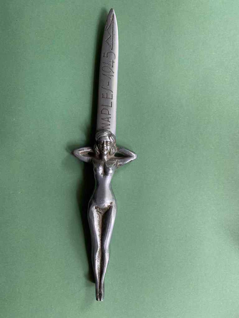 Помимо названия города на английском языке и даты, на лезвии выцарапан хорошо известный каждому, посещавшему Неаполь, силуэт дымящегося Везувия.