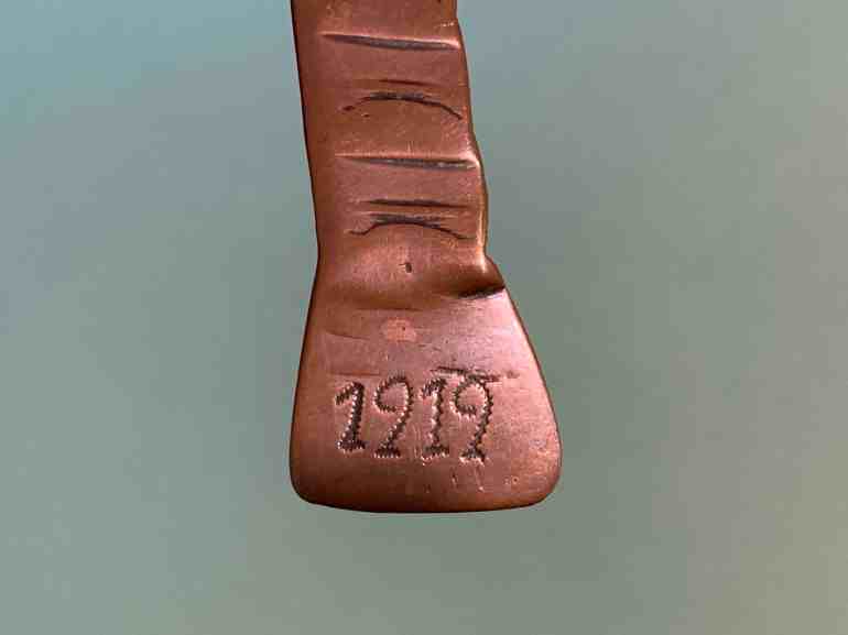 Данный медный открыватель писем — прекрасный образец Траншейного искусства, датированный 1919 годом.