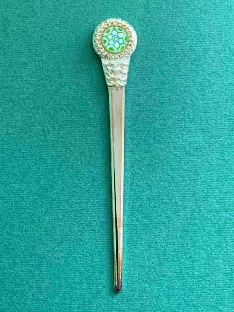 Данный открыватель писем изготовлен целиком вручную и украшен стеклянным элементом, выполненным в технике «Millefiori» («тысяча цветов»), известной с острова Мурано в Венецианской лагуне (см. тэг «Муранское стекло»).