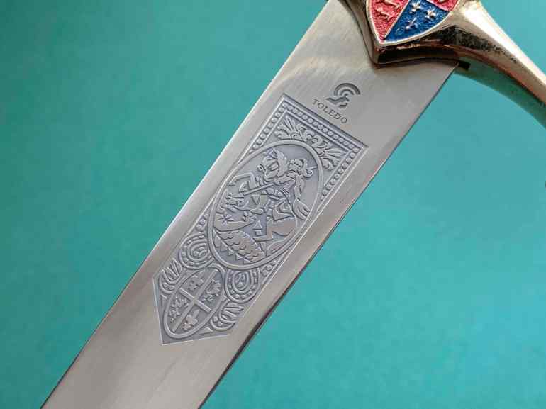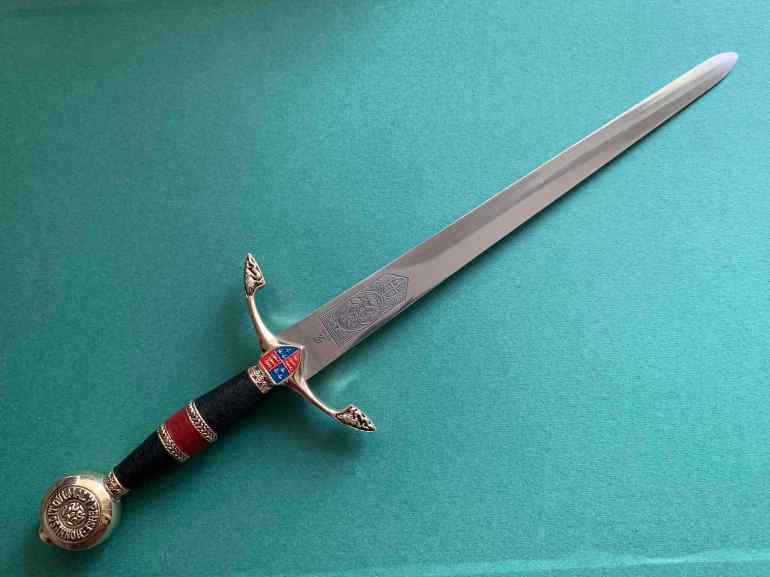 Это довольно большой сувенир, который может, теоретически, использоваться в качестве разрезателя страниц. Изготовленный в испанском Толедо, он задуман как копия кинжала Эдуарда, наследника британского престола, который был известен как Чёрный Принц (1330-1376). Эдуард не стал королём, потому что погиб раньше своего отца, короля Англии Эдуарда III. Военачальник и активный участник Столетней войны между Англией и Францией, Черный Принц — нередкий персонаж книг и фильмов, посвящённых той эпохе (роман Конан Дойля «Белый отряд», фильм «История рыцаря» и многие другие, включая пьесы Шекспира «Ричард II» и «Генрих V»).