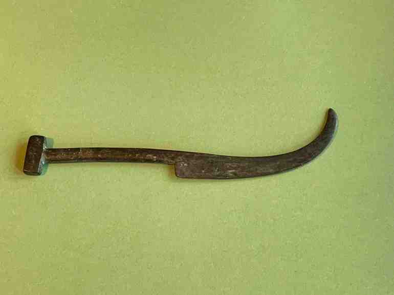 Это — копия монеты в форме ножа, которые были в ходу в Китае между VIII и V веками до н. э., то есть больше 2500 лет назад. Нож из металла, 15 см в длину и вполне может открывать письма. Сувенир приобретен в магазине Шанхайского музея, и на сопровождающей карточке заглавная надпись красным — это название прославленного заведения.