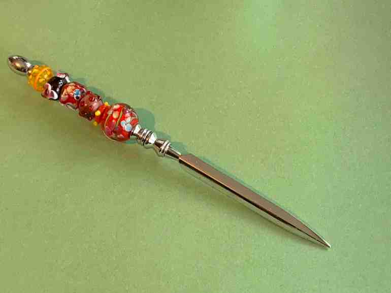 Этот открыватель писем изготовлен вручную и был приобретён на знаменитой Рождественской ярмарке в городе Линкольн, Англия, в декабре 2019 года.