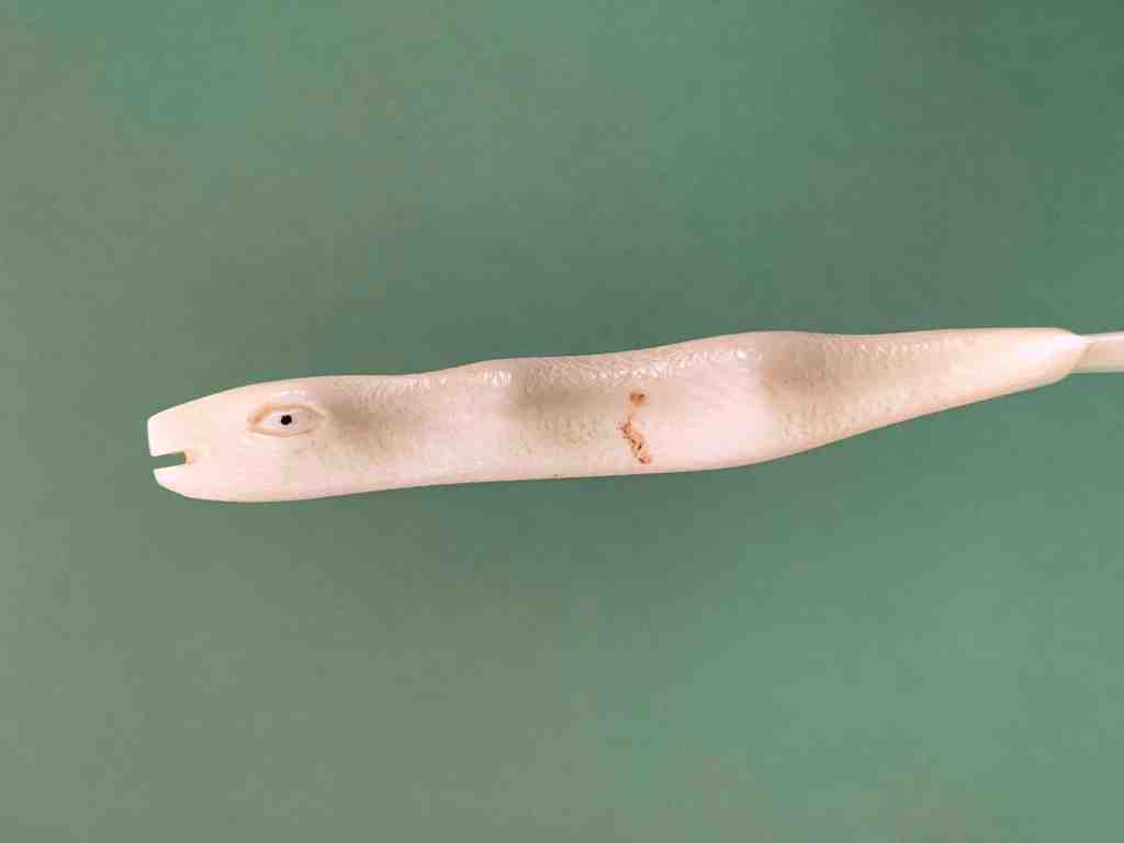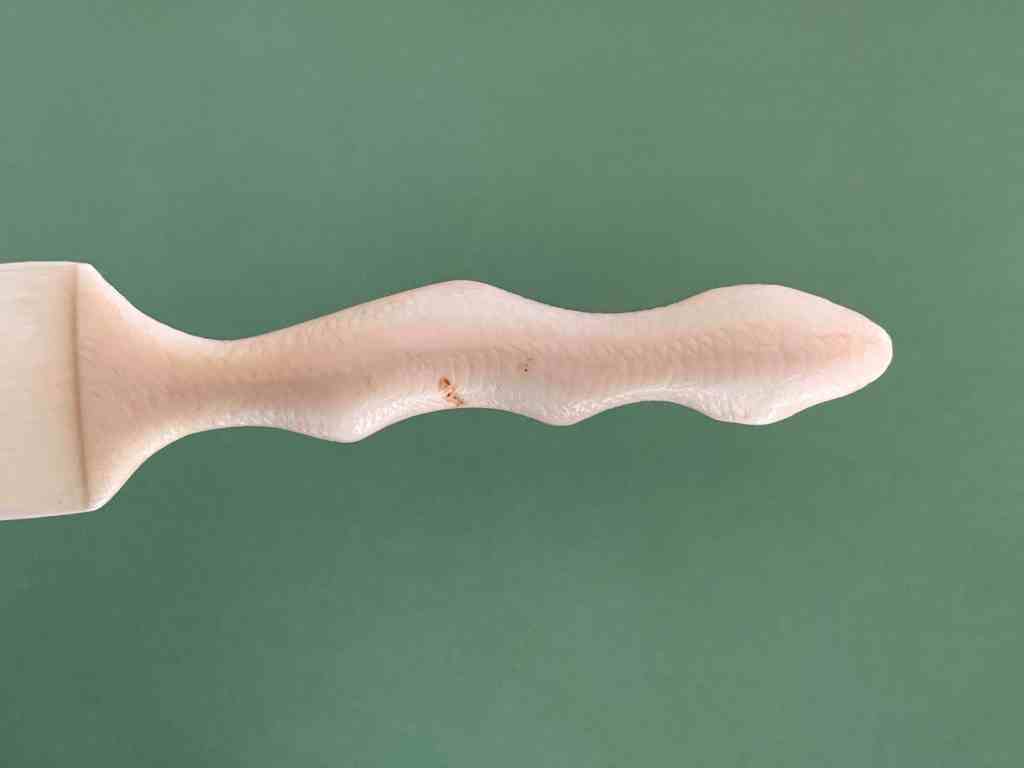 Этот открыватель писем выполнен из цельного куска кости, возможно, слоновой кости. Антиквар-продавец считал, что этот предмет изготовлен в Индии в конце XIX — начале ХХ века. Глаза змеи — просверленные чем-то очень точным углубления, аккуратно закрашенные чёрным внутри. Искусно нанесена резьбой «чешуя» змеиной кожи.