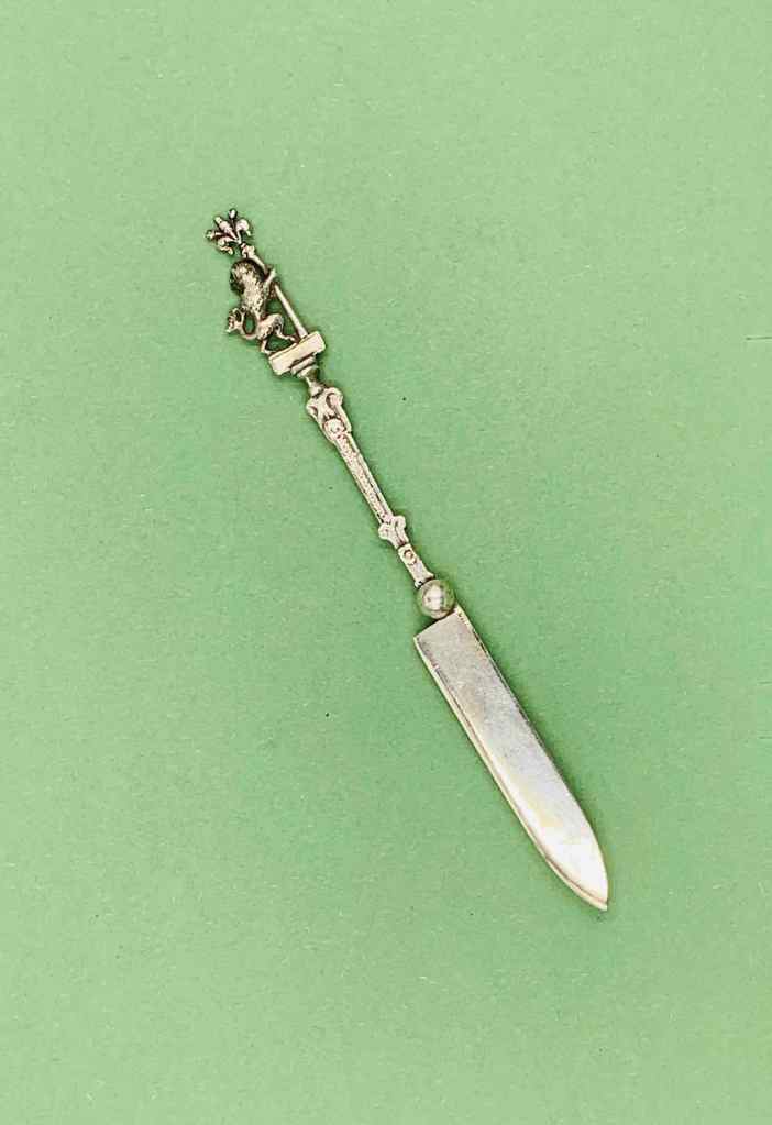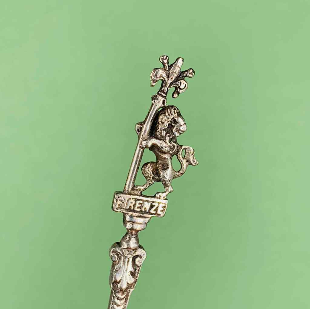 Изящный серебряный нож для конвертов всего 15,5 см в длину украшен львом, держащим лилию с герба города Флоренции. Под ногами льва — название великой столицы Тосканы на итальянском языке: Firenze.