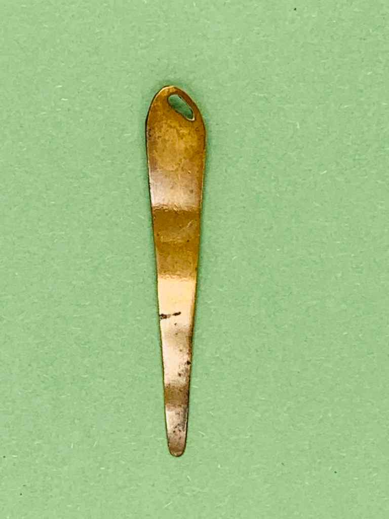 Всего 8 см в длину, этот потемневший от времени миниатюрный латунный открыватель писем был, вероятнее всего, изготовлен во Франции. Выгравированная надпись «Migneaux» (франц. произношение «миньо») — это распространённая французская фамилия и название небольшого острова на реке Сене в пригородах Парижа.