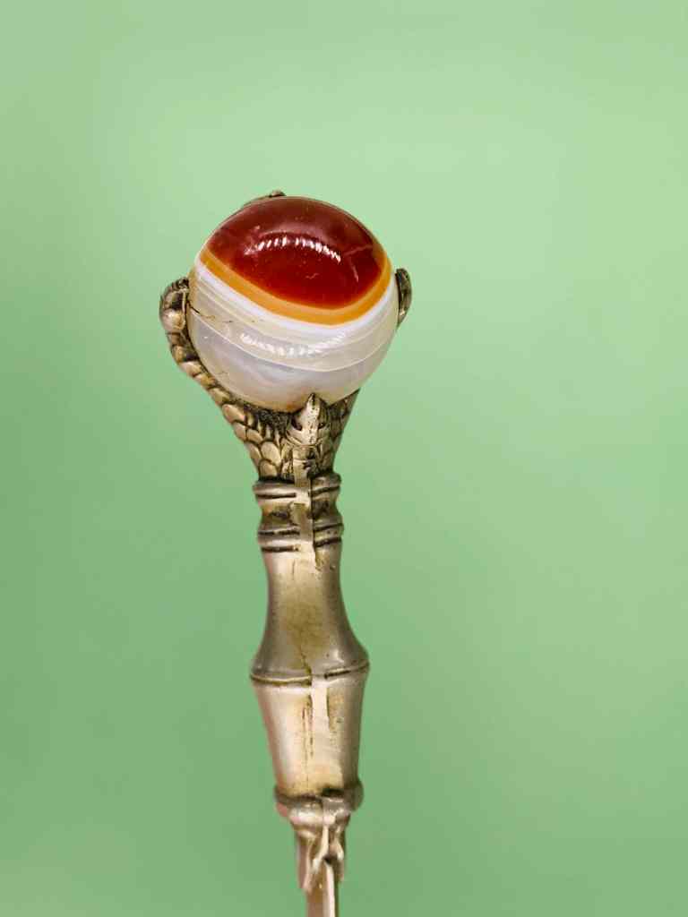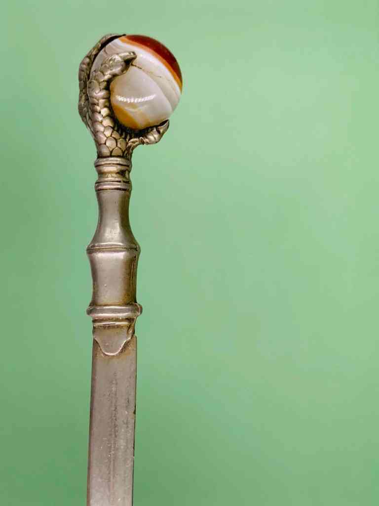 Меньше 12 см, этот миниатюрный открыватель писем производит слегка зловещее впечатление. «Глаз» — из натурального камня.